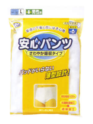 安心パンツ 軽度失禁パンツ 男性用L 普通の下着と同じはき心地。さわやか吸収タイプの軽度失禁用下着。男性用Lサイズ(ウエスト84?94cm)。【日用品屋】安心パンツ 軽度失禁パンツ 男性用L【※キャン